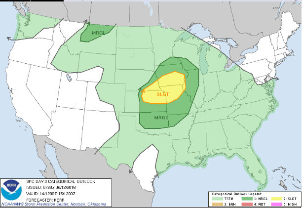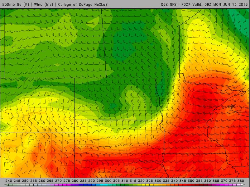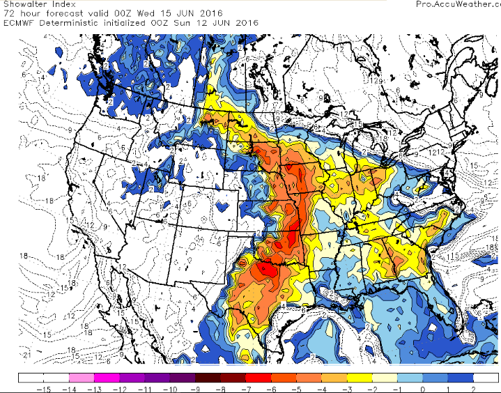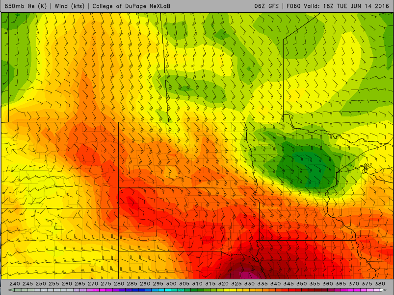 After Sunday’s cold front ushers in cooler and drier air for Monday in the Northern Plains, a warm front will push north Tuesday. This warm front is attached to a low pressure system that will be moving northeast through the Rockies and into the Northern Plains. Areas in between the northward moving warm front and the southeastward moving cold front could see some strong to severe thunderstorms on Tuesday. This would mainly occur in the eastern Central Plains and portions of the Middle Mississippi Valley where convective energy, CAPE, and turning of the winds, shear, overlap to be able to support these storms.