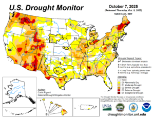 Dry weather over the last several weeks has caused most of the Eastern U.S. to become dry, with some areas even experiencing extreme drought conditions. Image provided by the National Drought Mitigation Center.