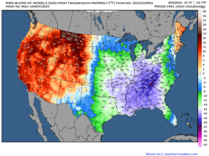 Arctic air will send temperatures plummeting across the eastern half of the United States. Image provided by Weather Models.