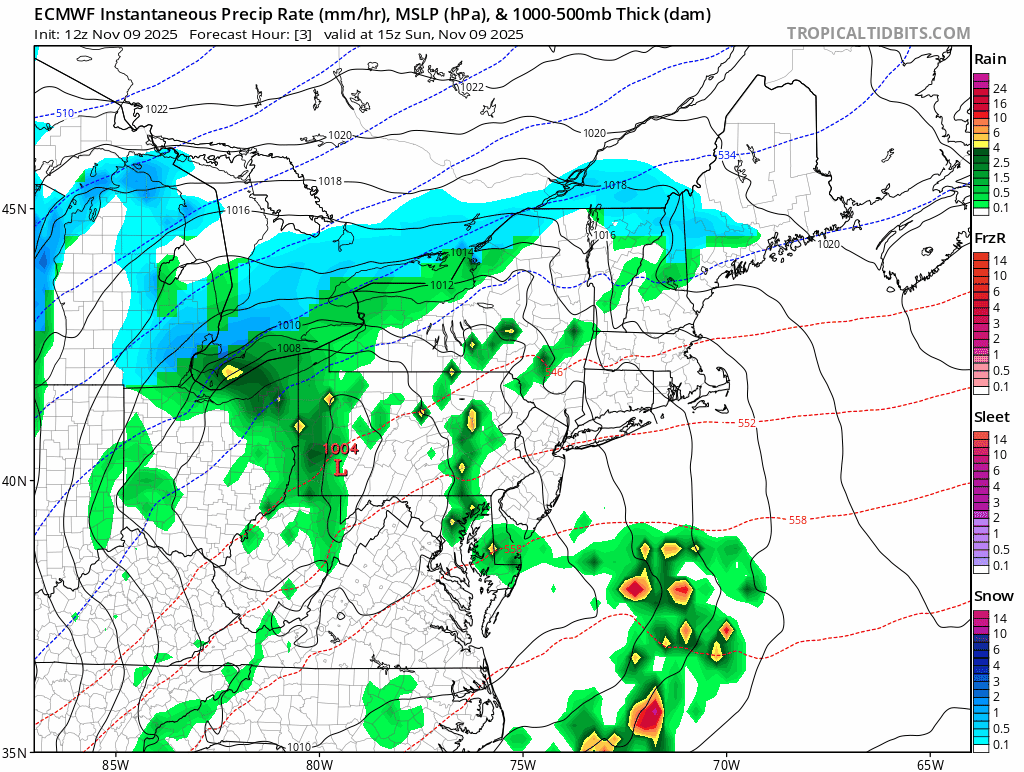 The pattern will remain unsettled across the Northeast for much of the week as a series of systems and smaller disturbances move through the region. Loop provided by Tropical Tidbits.